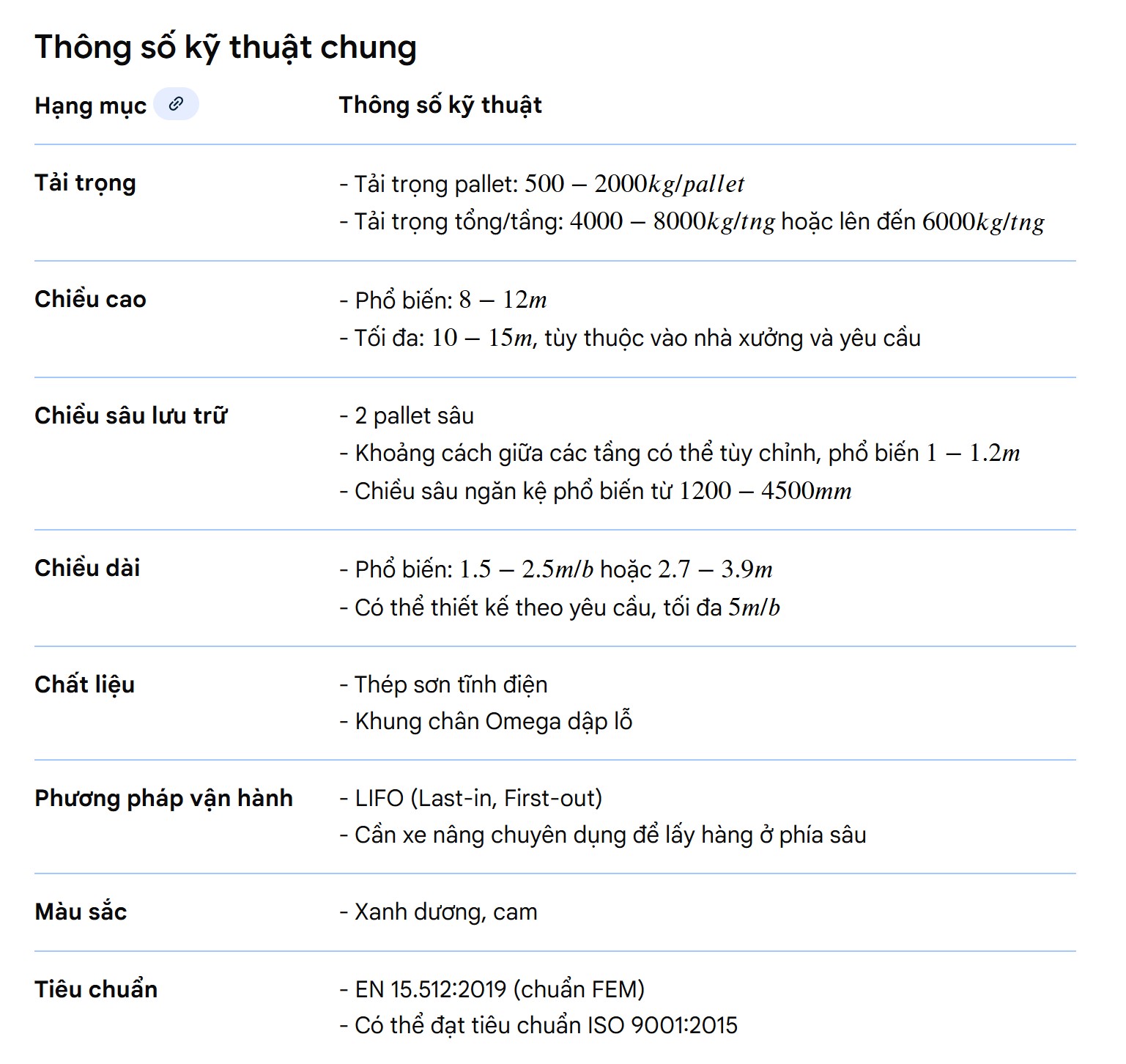Tìm hiểu về Thông số kỹ thuật của Kệ Double Deep – Kệ Double Deep Pallet Racking