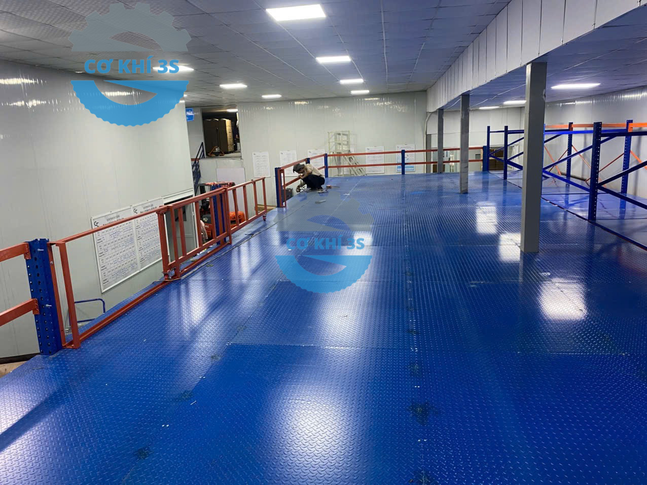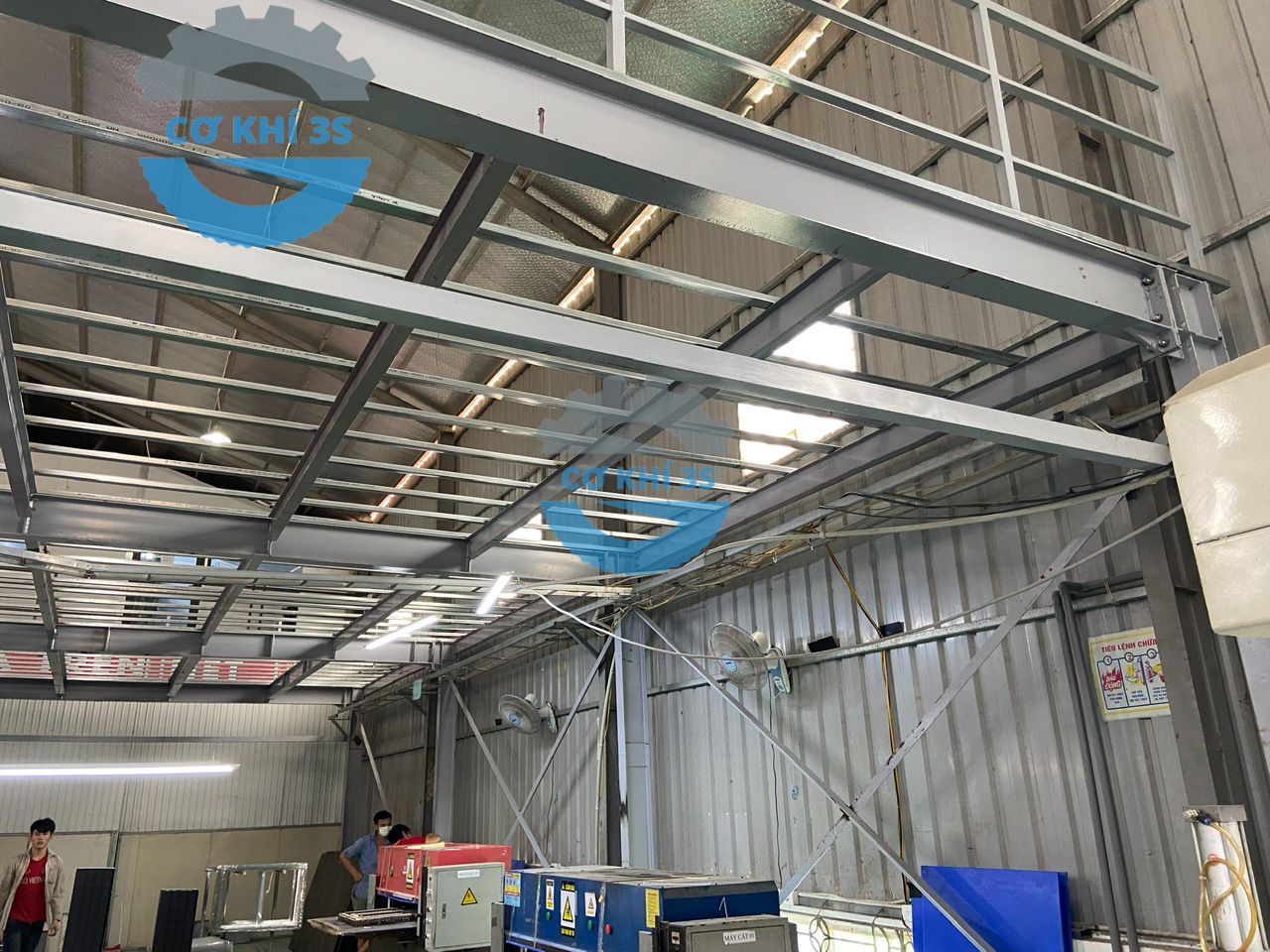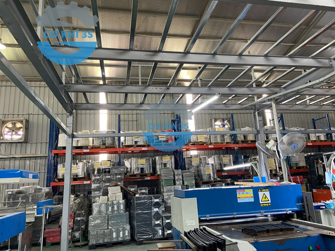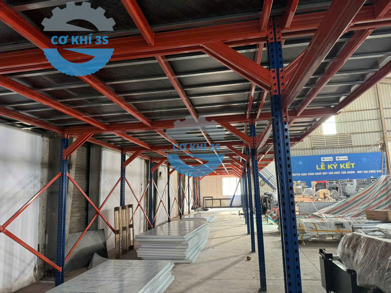 Thi công kệ sàn gác lửng cho nhà máy lắp ráp máy cắt nhôm làm văn phòng phía trên và sản xuất bên dưới tại Hà Đông