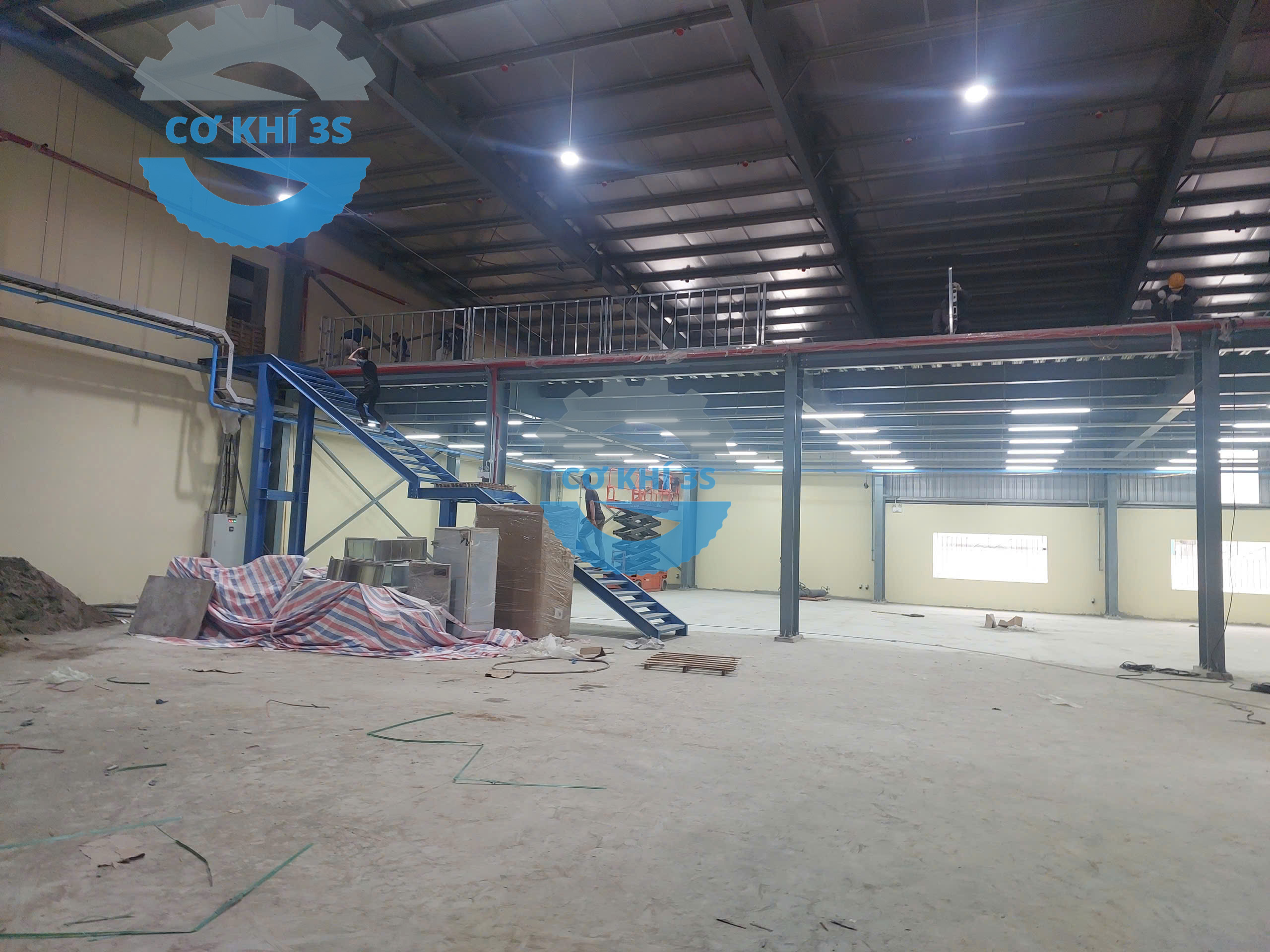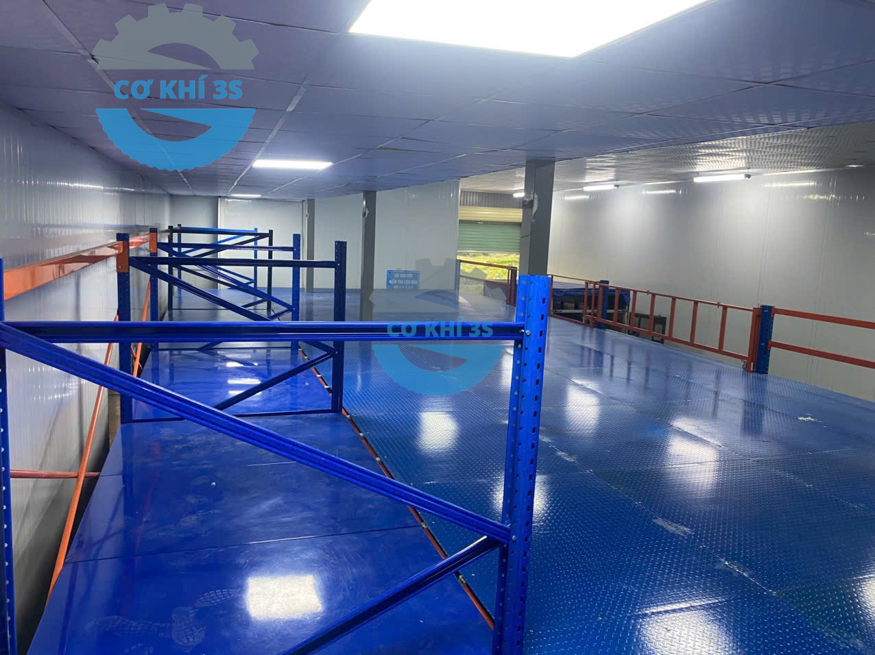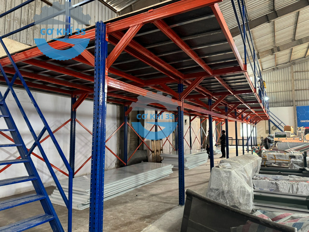 Thi công kệ sàn gác lửng cho nhà máy lắp ráp máy cắt nhôm làm văn phòng phía trên và sản xuất bên dưới tại Hà Đông
