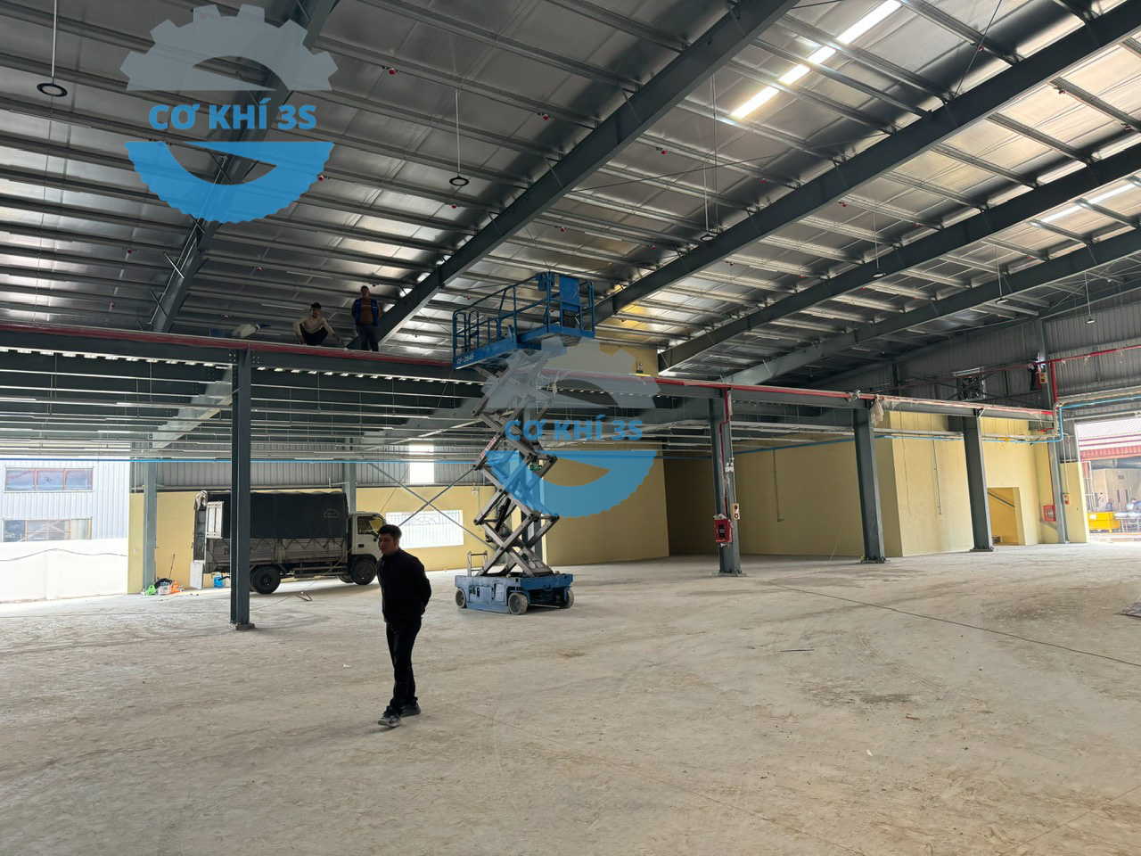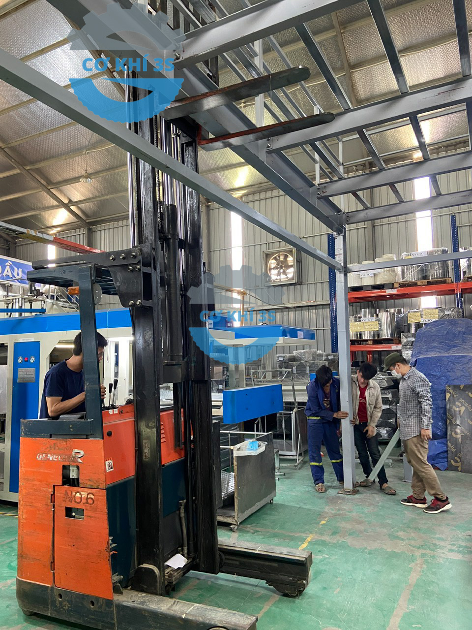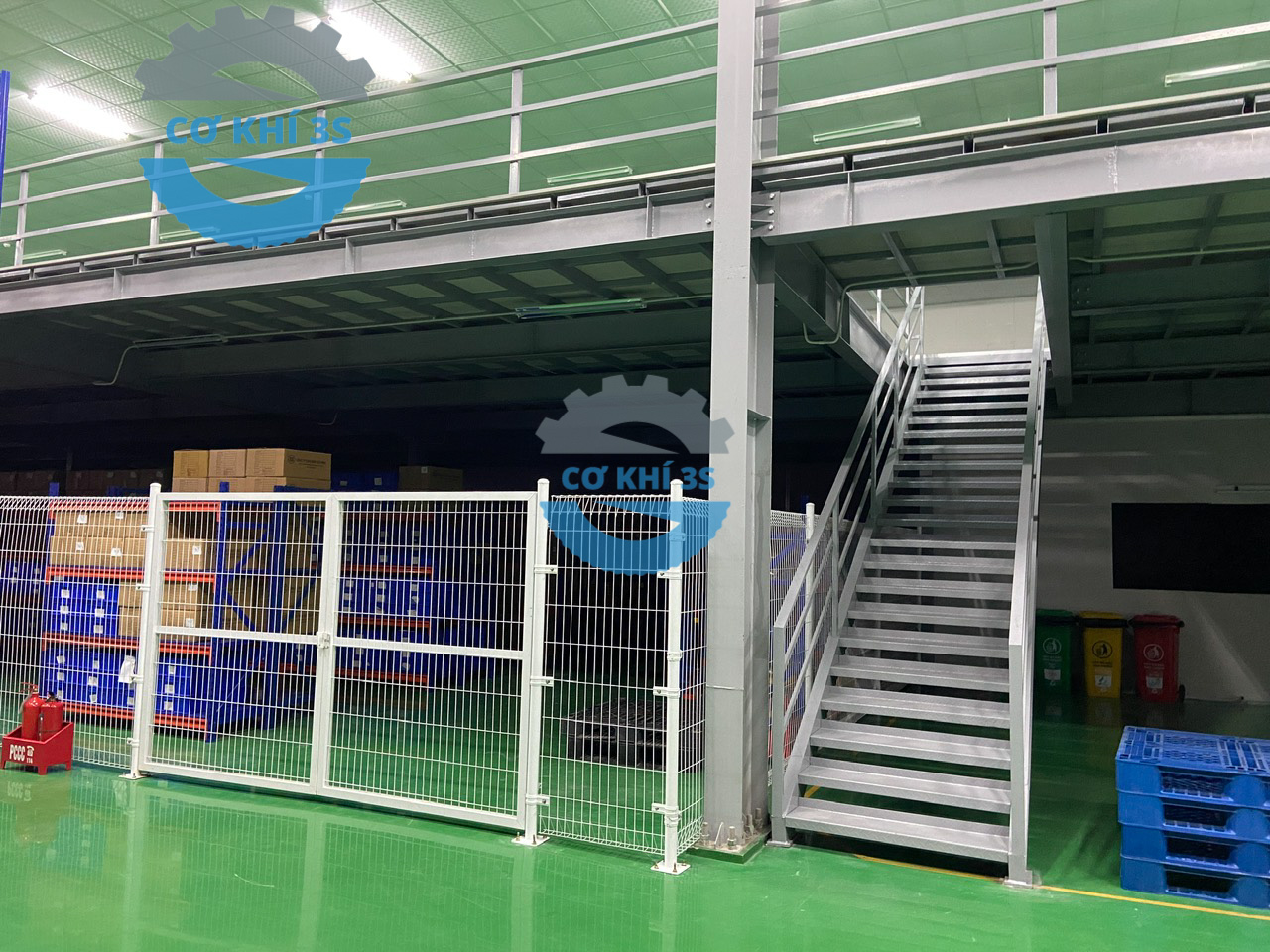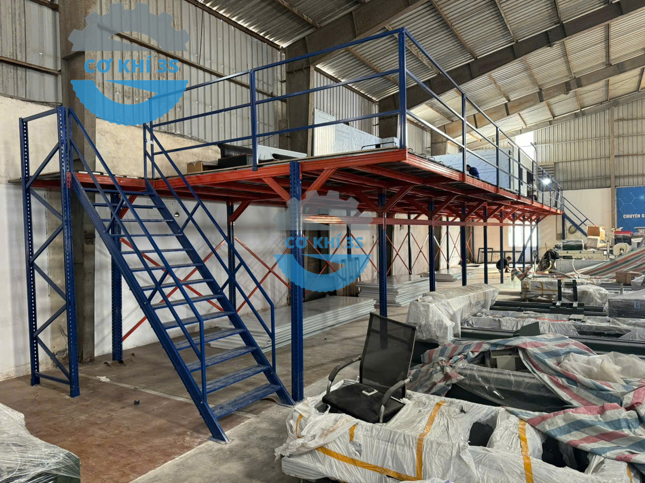 Thi công kệ sàn gác lửng cho nhà máy lắp ráp máy cắt nhôm làm văn phòng phía trên và sản xuất bên dưới tại Hà Đông