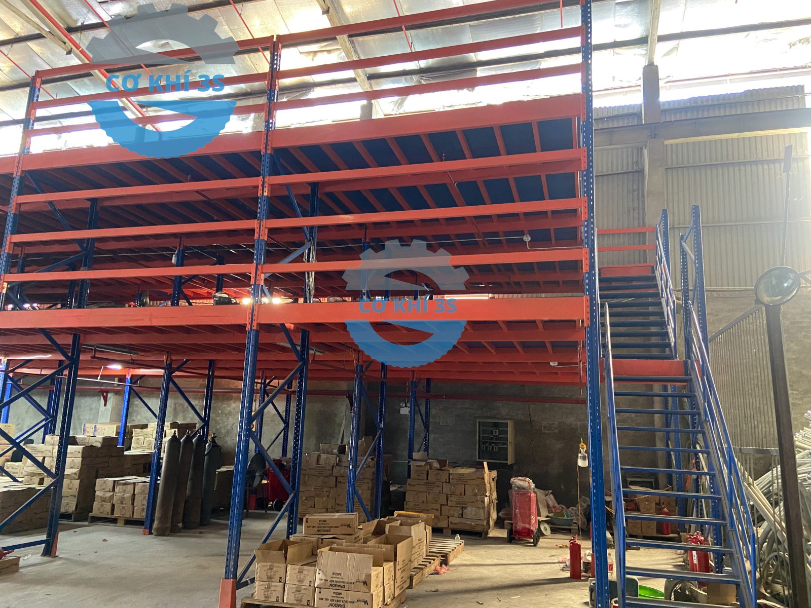Lắp đặt kệ sàn lửng 2 tầng cho nhà máy sản xuất cột đèn, phụ kiện sắt thép, bình chữa cháy…tại Thạch Thất