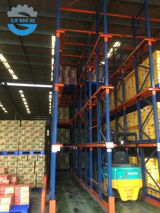- Các pallet sẽ được đẩy lùi dần từ lối đi bằng xe nâng