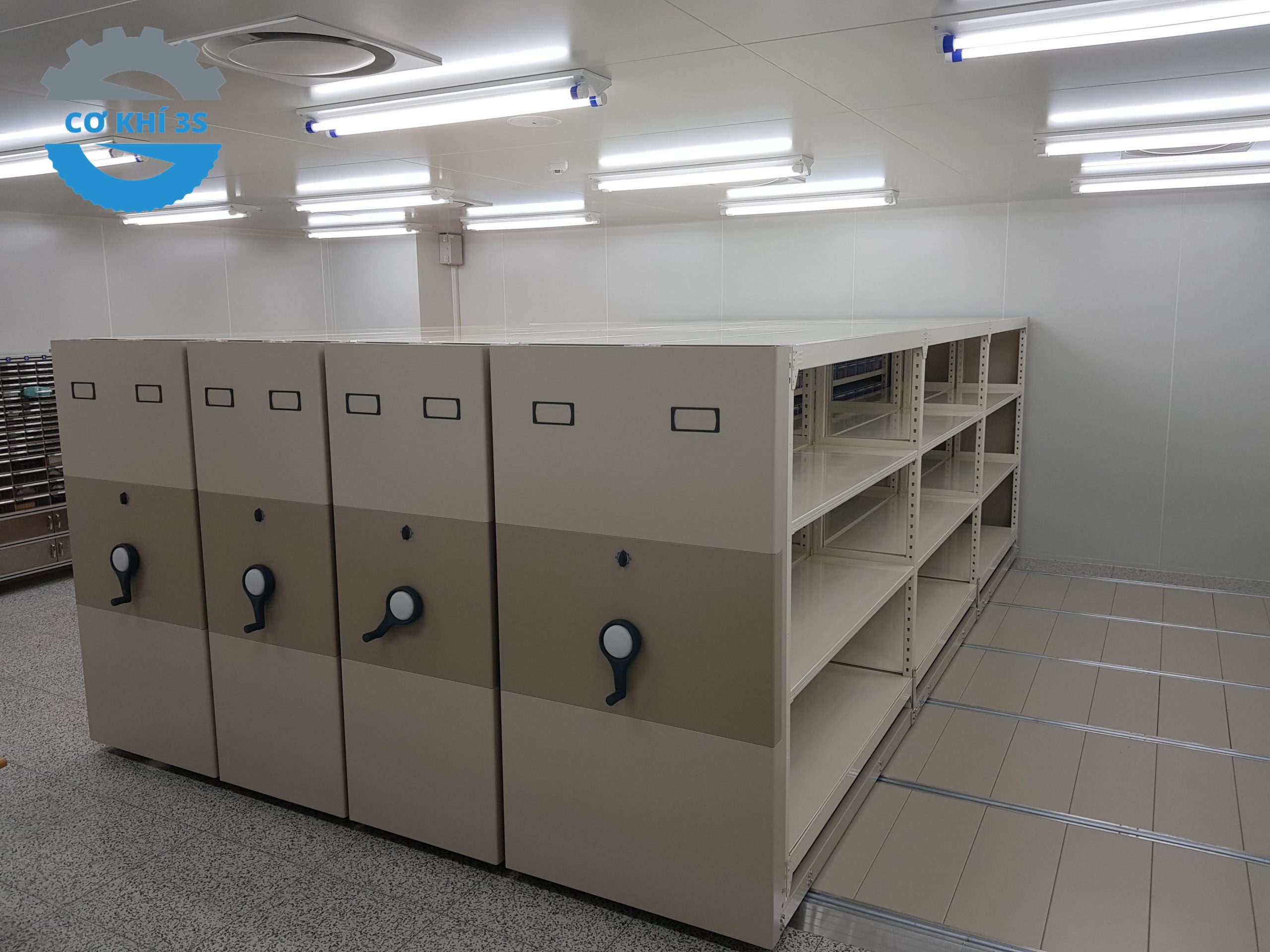 - Đóng lối đi: Sau khi hoàn tất, kệ sẽ được di chuyển trở lại vị trí ban đầu để tối ưu hóa không gian lưu trữ.