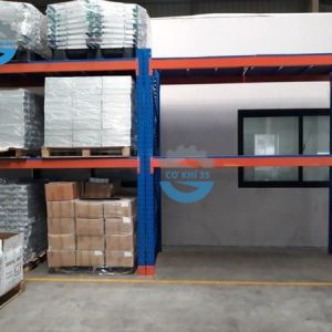 - Kích thước giá kệ selective sàn tôn 2 tầng hợp lý với các kho hàng chiều cao dưới 5 mét, hàng hóa đóng theo kiện pallet, lỗi đi rộng rãi > 2 mét