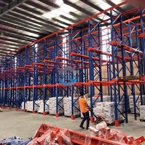 Sự khác biệt chính giữa loại kệ này và kệ Selective là xe nâng có thể đi sâu vào trong hệ thống giá kệ. Các xe nâng hàng có thể đi vào từng khoang riêng lẻ của kệ mà các khoang này không cần có cùng kích thước.