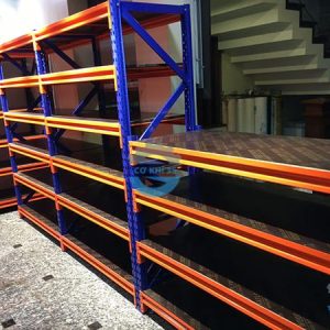- Kích thước giá kệ hạng trung 4 mặt sàn hợp lý với hầu hết các kho hàng hoá, trong nhà kho. Lối đi thích hợp > 1 mét.